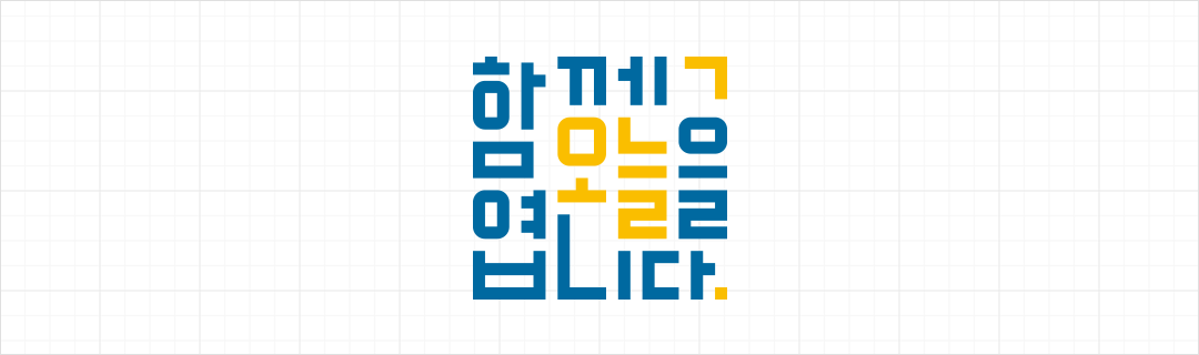 심볼과 레터 타입의 조합은 매체의 상황에 따라 사용 공간의 비례와 전체 면의 레이아웃 등을 고려하여 적절한 형태를 사용해야 합니다.