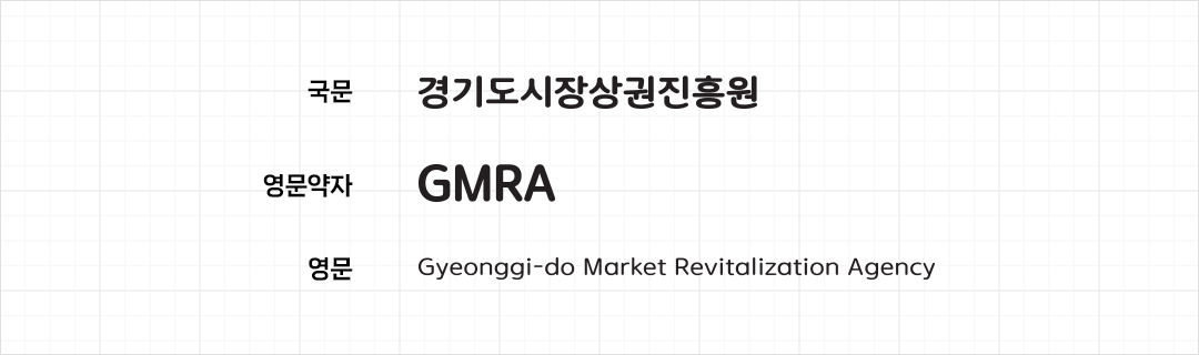 로고타입은 로고마크와 더불어 경기도시장상권진흥원의 아이덴티티를 시각적으로 전달하는 가장 기본적인 요소입니다.