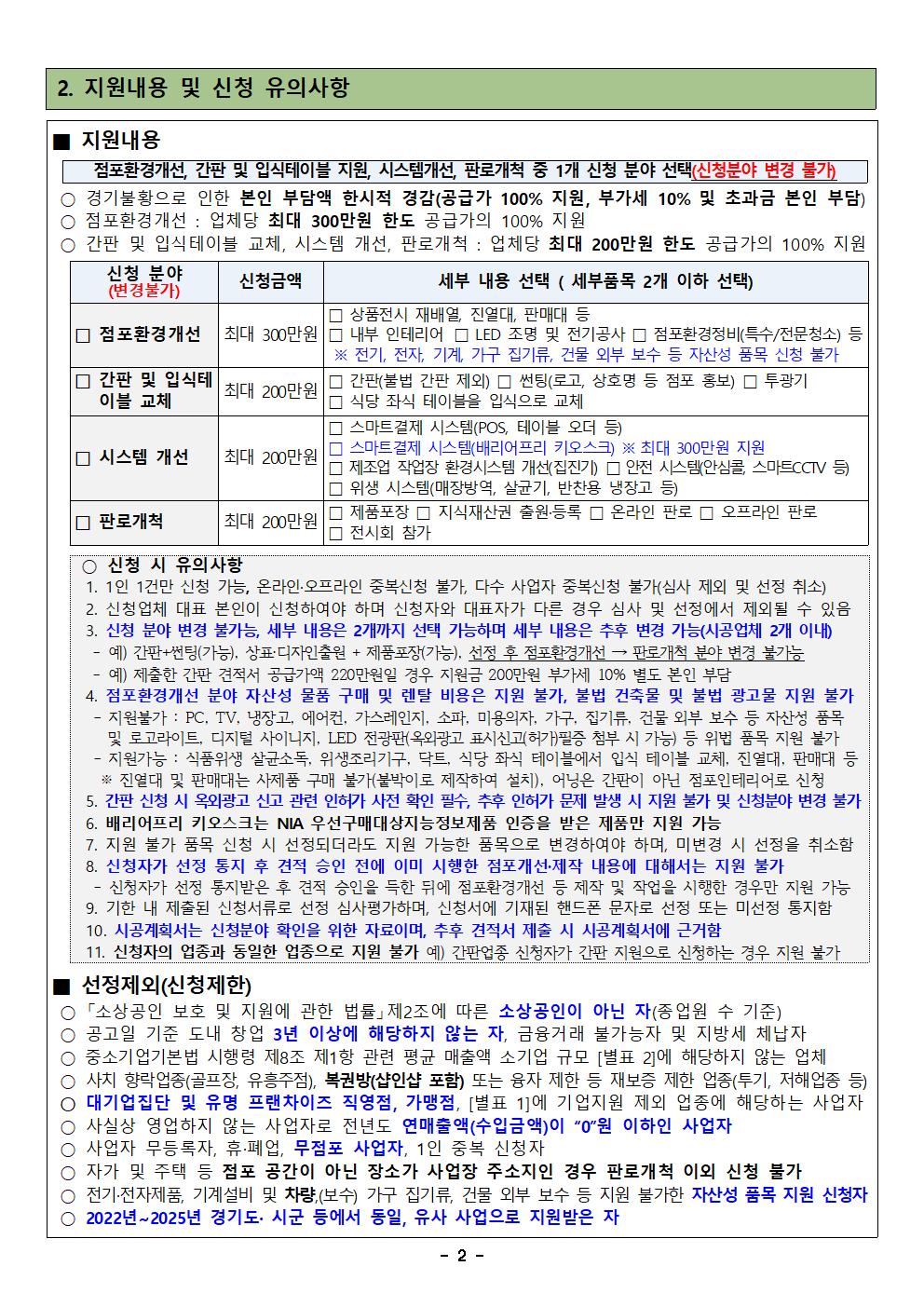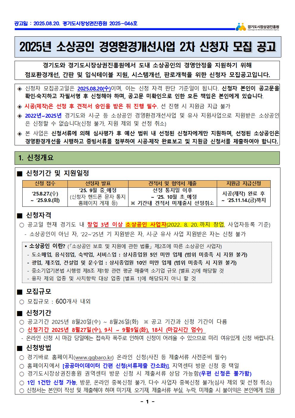 2025년 경기도 소상공인 경영환경개선 지원사업 2차 모집 공고